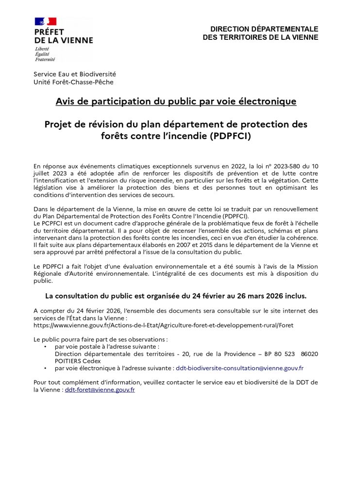 Publication avis de consultation du public PDPFCI