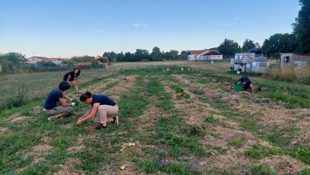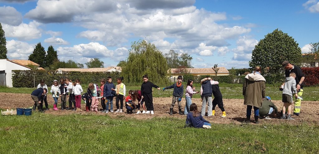 Pommes de terre, courgettes, potirons, courges, patates douces, tout le monde a planté , enfants, adultes, sous le contrôle d’Amandine GATINEAU, notre conseillère maraichère bio FRAB* Nouvelle Aquitaine.